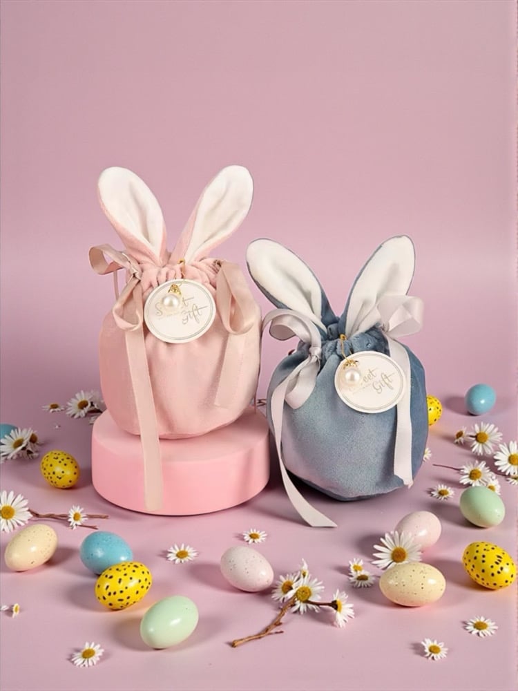 Made from the softest velvet and finished with silky ribbon drawstring ties and adorable bunny ears, these bags are a keepsake that can be reused year after year.